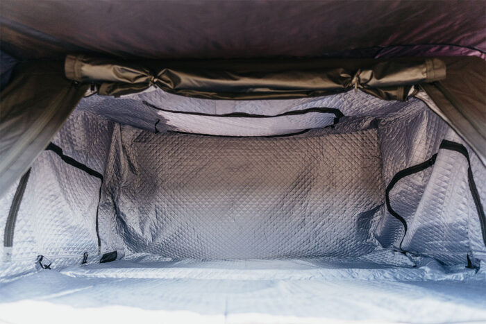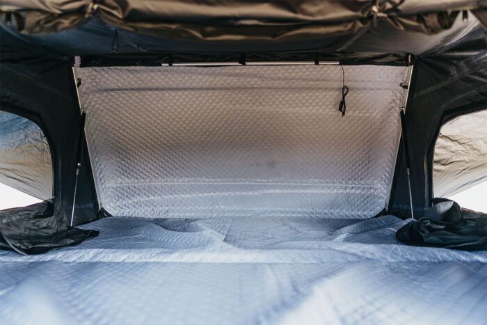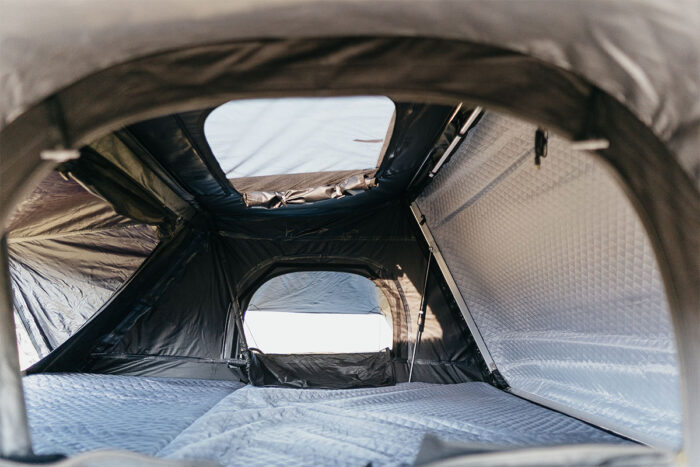 Integrierte Moskitonetze sorgen für ungestörte Nächte, während die nahezu 100%ige Verdunkelung einen erholsamen Schlaf garantiert. Dimmbaren LED-Leisten sorgen für Beleuchtung im Inneren des Dachzelts und für eine gemütliche Atmosphäre.