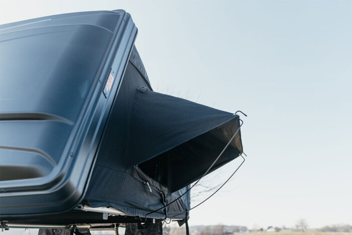 Das Family Hybrid kombiniert die Vorteile von Hartschalen- und Klappzelten und bietet eine großzügige Liegefläche, hochwertige Materialien und eine einfache Handhabung. Das aerodynamische Design reduziert obendrein den Luftwiderstand und sorgt für eine optimale Fahreffizienz.