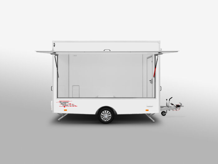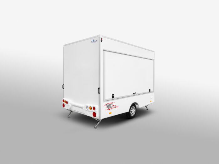Der Verkaufsanhänger Basic 36 eignet sich perfekt für den Einstieg in die Streetfood- und Event-Branche. Die Innenausstattung kann individuell mit 2. Verkaufsklappe, Gaskasten, Stromversorgung, Gastrogeräten, Regalen und Arbeitsflächen geplant werden.