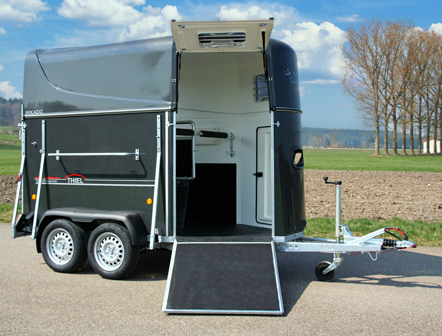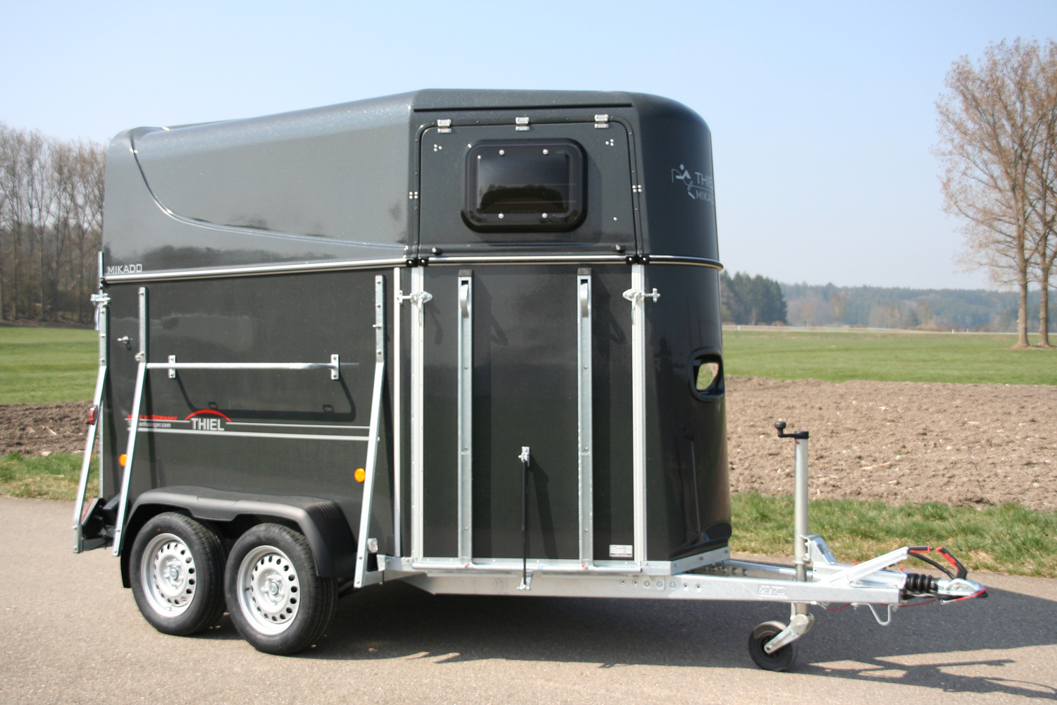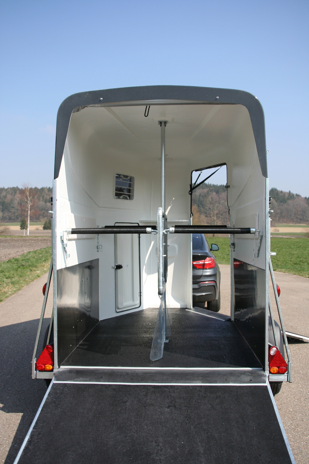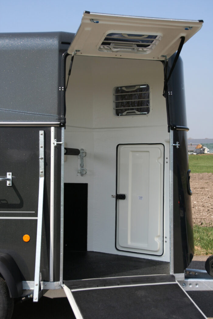 Unerfahrene oder problematische Pferde sind mit dieser funktionellen und attraktiven Hängervariante bestens bedient. Der große Vorderausstieg macht das Verladen unkompliziert und problemlos.