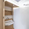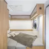 Es sind zwei verschiedene Oberflächendekore, diverse Polster- und Vorhangfarben zur Auswahl. Die kippbaren Seitenfenster können in den Tönungsstufen Beige oder Graphit oder auch Klarglas bestellt werden. Der robuste PVC Boden ist in heller Laminatoptik.
