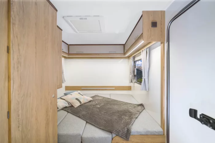Der Wohnwagen Lazur 3 ist zudem mit einem Autark-Paket ausgestattet, das eine leistungsstarke 95-Ah-AGM-Batterie enthält.