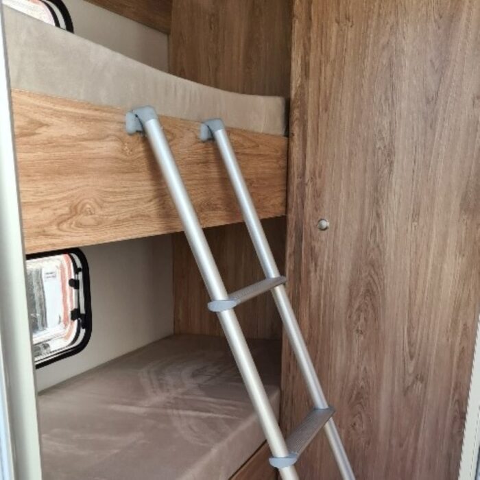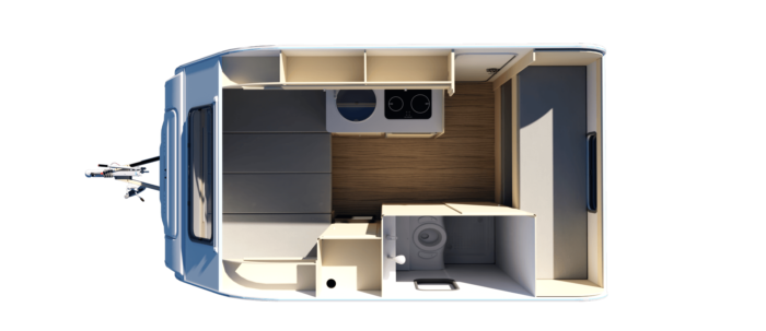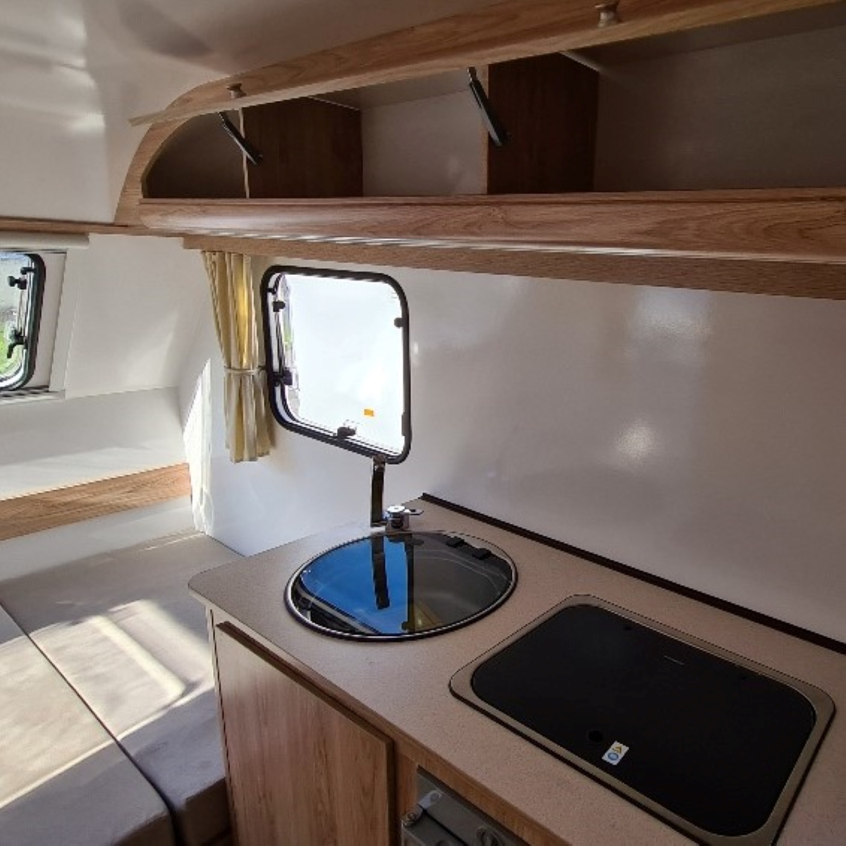 Der Sandwich Aufbau des Wohnwagenmodelles ist sehr robust gebaut und enthält eine 25 mm Schaumstoffisolierung. Das moderne Design und die ausgesprochen gute Platzeinteilung bieten ausreichend Platz für eine 4-köpfige Familie.