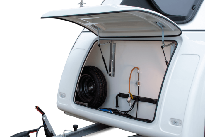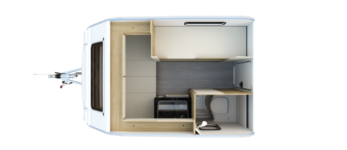 Zum ersten Mal gibt es einen Wohnwagen von Niewiadow, bei dem sich die Eingangstür auf der Rückseite des Anhängers befindet.